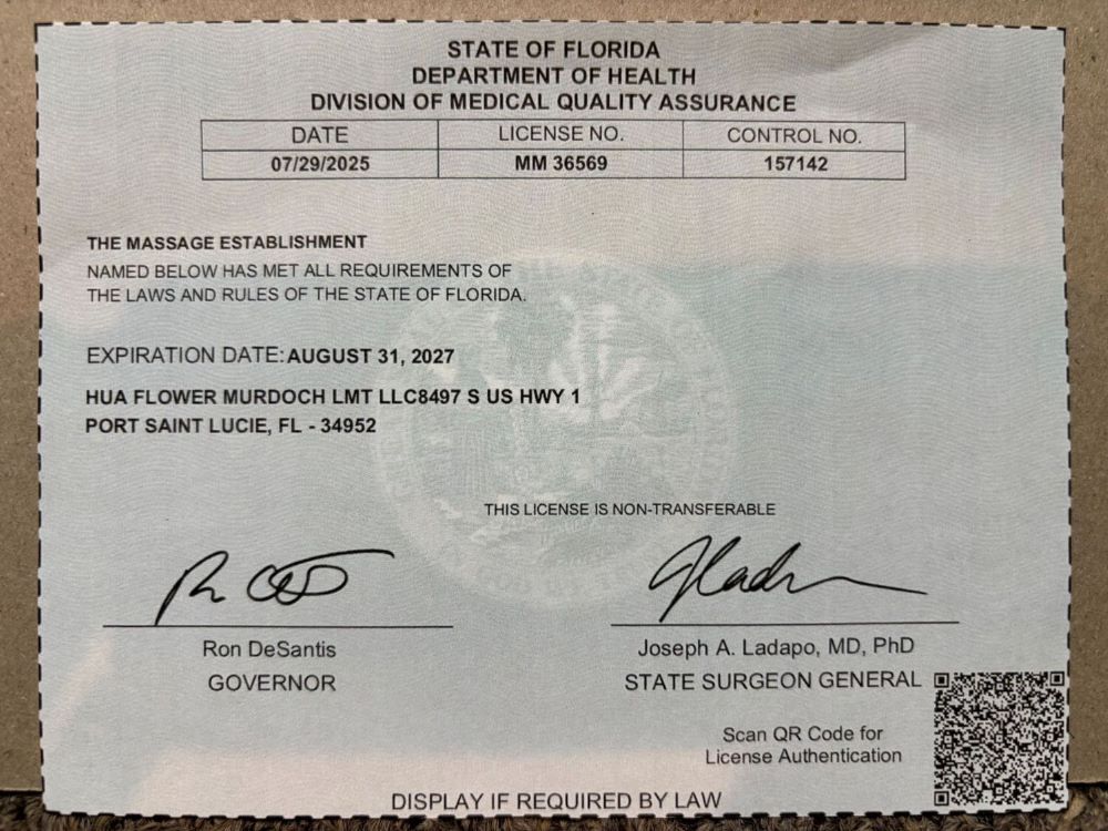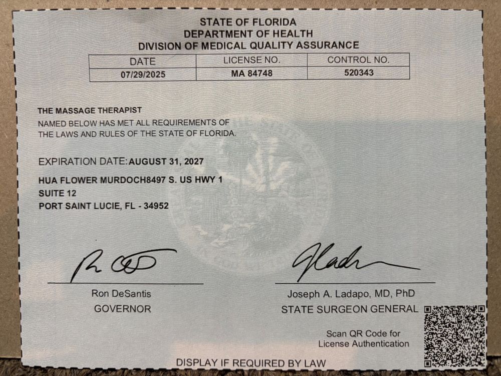 Hua Flower Murdoch LMT Lic #: MA 84748 MM 36569